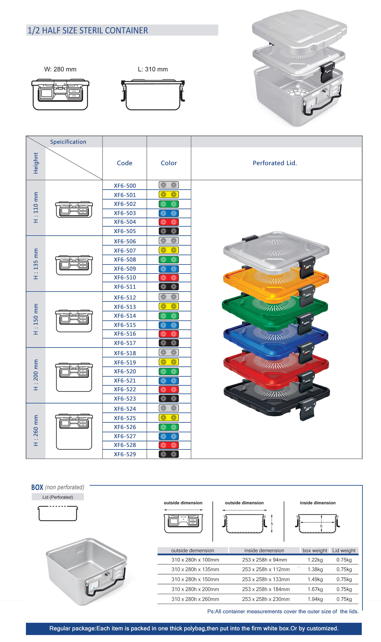 1/2 container 310mm x 285mm x 100mm red lid perforated - unperforated tub Internal dimensions 253mm x 258mm x94mm