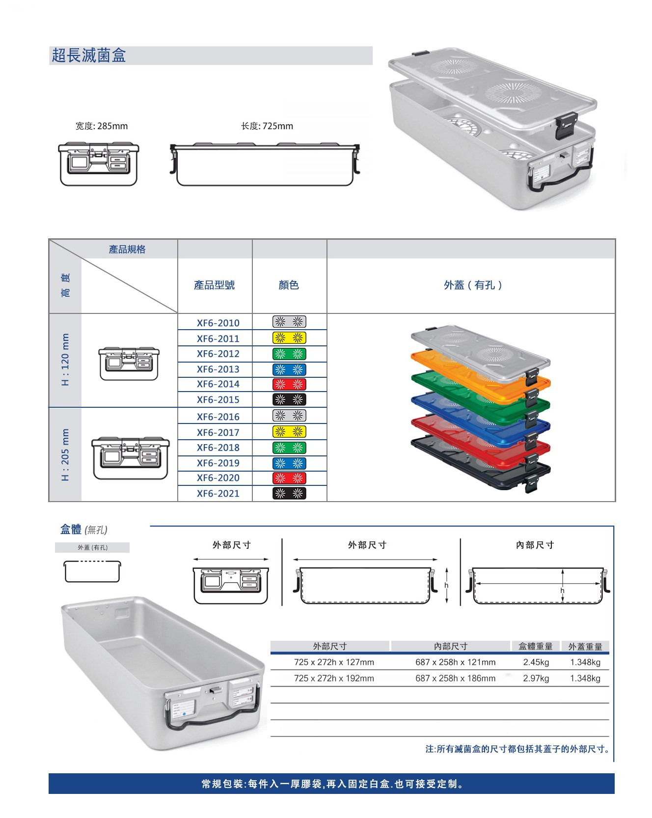 超長型滅菌盒 外部尺寸 710mm x 280mm x 180mm 內部尺寸 687mm x 258mm x 160mm 藍色